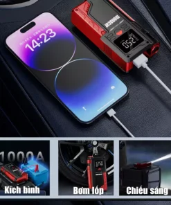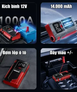 Kích bình ô tô 12v, bơm lốp đa năng 4in1 monacar 14000mah, Bảo hành 12 tháng 1 đổi 1